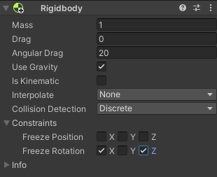 - 리지드바디 추가 후 수치 변경