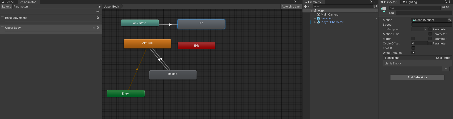 - Idle에서 Reload는 동작 끝날때 까지 기다릴 필요없지만 장전은 기다려야해서 체크